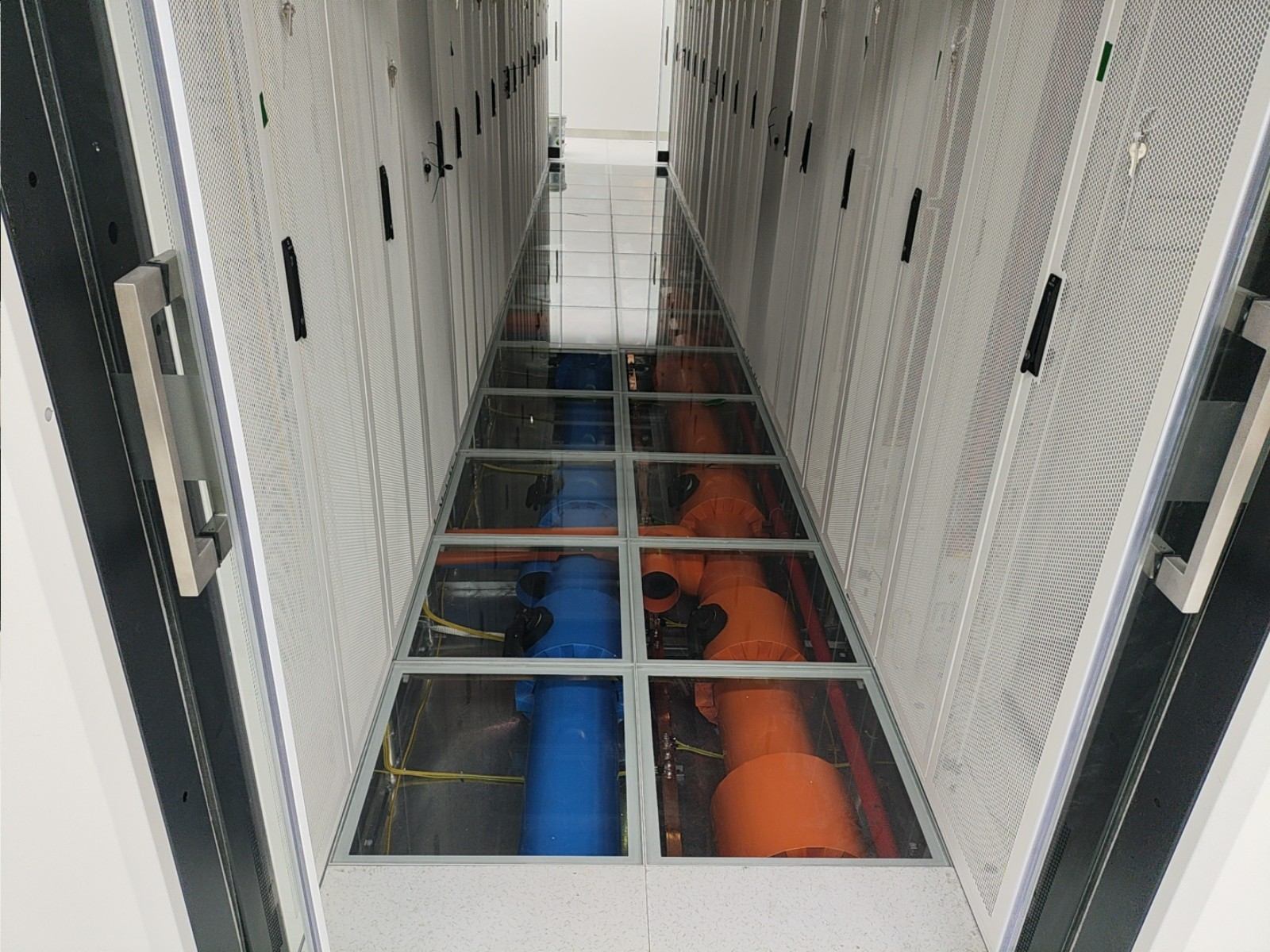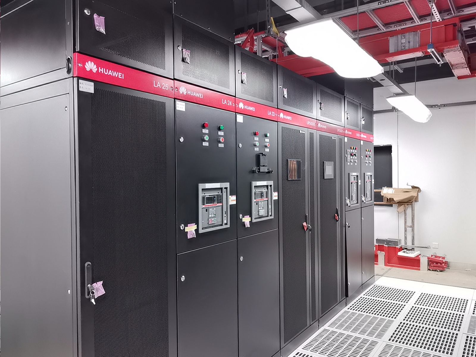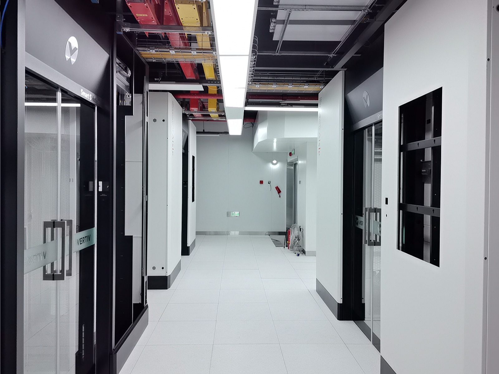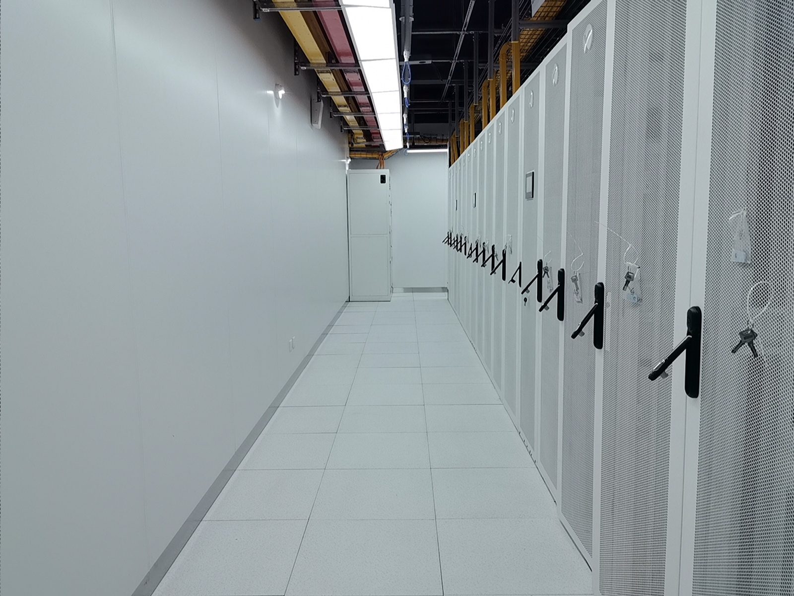 通过部署华为一体化模块化UPS,我们实现了设备空间占用的显著节约、连接线缆的减少以及系统可靠性的提升。维谛品牌的微模块成套系统,包括机柜、精密空调、动环监控和电池监控等组件,不仅系统集成度高,而且可靠性强,其软件平台的开发响应也十分及时。西门子的密集母线和智能小母线系统,集成了母线测温和在线监控功能,进一步增强了系统的可靠性。封闭热通道的设计,确保了系统拥有充足的冷量储备,从而提高了容灾能力。封闭通道的玻璃观察地板和内部管道的PVC彩壳包覆,不仅保证了整体风格的统一和协调,还提升了美观度。仿真测试机房3,一个280平方米的屏蔽机房,其顶面壳体设计为平顶,并且封闭热通道采用了95吋LED显示屏整体式移门,极大地提升了观摩机房的视觉效果。在整体颜色管理方面,我们采用了红/黄双色对供配电A/B路、密集母线、智能小母线、电力电缆、PDU外壳等进行区分,确保了清晰醒目。此外,采用彩钢板墙面和夹心彩钢板顶面,有效提升了机房的洁净度和防尘能力。